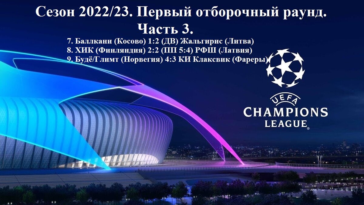 Всем привет! На очереди третья часть о матчах первого отборочного раунда Лиги Чемпионов. Всего пар было 15, по три в каждой части, следовательно - мы на экваторе!