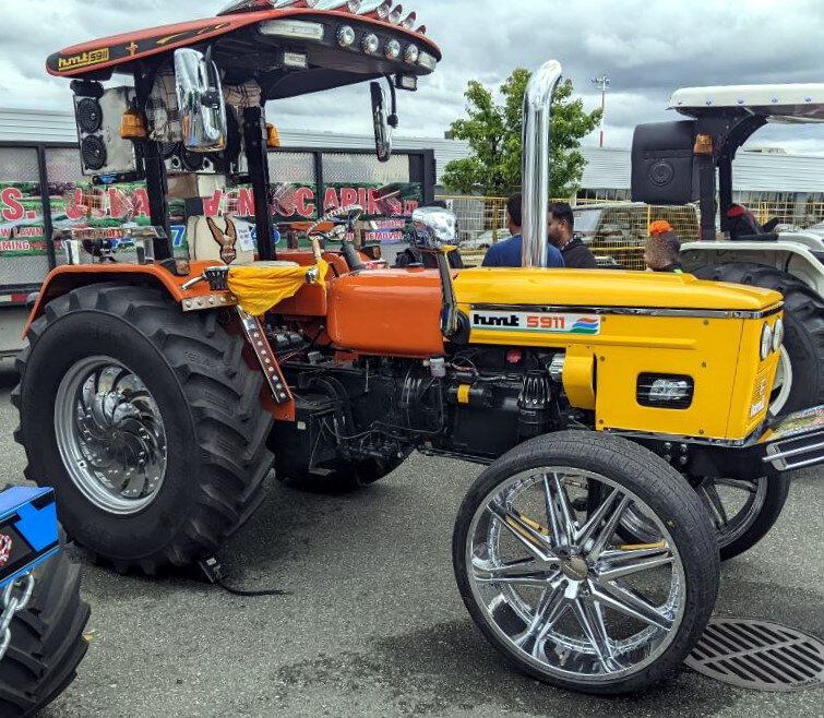 Недавно неподалёку от Ванкувера (Канада) прошла небольшая выставка тракторов, на которой можно было увидеть крутейшие экземпляры с тюнингом в индийском стиле. Их создают фермеры, давно перебравшиеся из Индии в Канаду, чтобы не забывать о своих корнях. Тюнинг, конечно, получается излишне вычурным, но именно такие предпочтения к украшательству у индийцев. На фотографии выше вы можете увидеть трактор индийского бренда HMT. Модель 5911 представляет собой лицензионную копию модели от Zetros, но оснащается индийским 59-сильным дизелем от HMT. Вообще, обычно эти тракторы выглядят гораздо боле скромно, но этот экземпляр оранжевого цвета получил огромные хромированные передние колёсные диски с шоссейной резиной, кучу блестящих деталей и много дополнительного света. Ниже — еще один индийский трактор. Он называется Swaraj 855 FE. Тюнинг очень похож, разве что владелец не стал ставить шоссейные передние колёса, оставив широкую зубастую резину. А как вам мощная аудиосистема с динамиками, расположен