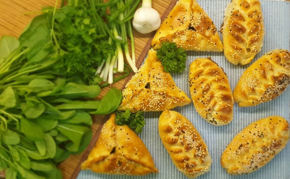 #вторник #кукпадготовит #готовимвместе Ингредиенты: 🔷️Для теста:, сливок 10%, муки (смотреть замес), сухих дрожжей, яйца, сахара, соли, раст.масла, 🔷️Для начинки из шпината:, шпината, зелёного лука, сумах, гранатового соуса, соль , 🔷️Для начинки из картофеля:, картофеля, луковица, зелёный лук, укроп, сливочного масла, соль, перец, 🔷️Для обмазки:, яйцо, молока, 🔷️Для посыпки:, кунжут Способ приготовления: Сливки нагреть до тёплого состояния, добавить в них дрожжи, сахар, 5 ст.л. муки, перемешать. Накрыть пищевой плёнкой, проделать дырочки. Оставить на 30 минут. Далее в опару добавить яйца, соль, раст. масло, перемешать. Начать просеивать муку и замешивать тесто, оно не должно липнуть к рукам. Накрыть и оставить на час для подъёма. Затем тесто разделить на равные части, у меня вышло 25 штук, скатать в шарики, накрыть плёнкой и пусть полежат минут 20. У шпината оборвать листочки, стебли не нужны. Порезать мелко, добавить порубленный зелёный лук, суммах, гранатовый соус, посолить, пер