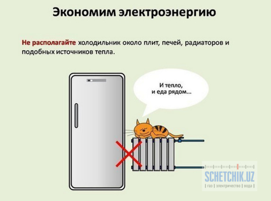 Экономия электроэнергии это в первую очередь отдельное внимание постоянно работающим приборам. В нашем случае к холодильнику. Первым делом, я перенёс холодильник из кухни на зал, где просторно и прохладно. Потому что в кухне постоянно жарко, а при жарком помещении, холодильник будет трудиться в 2 раза больше, следовательно перерасход тока. Но тем не менее, вокруг холодильника должно быть некоторое расстояние. Примерно 5 сантиметров свободного пространства вокруг, позволяет достаточно охлаждаться змеевикам и компрессору. 1. Холодильник должен находится подальше от источников тепла. Это включает в себя прямые солнечные лучи и радиаторы отопления, а также теплогенерирующие приборы, такие как кухонные плиты и печи. 2. Проверьте, плотно ли закрыты двери. Вы можете проверить уплотнение, подложив между дверью и холодильником лист бумаги. Если вы сможете легко вытащить лист при закрытой двери, вероятно, пришло время заменить резиновую прокладку по периметру двери. 3. Держите змеевики (радиато