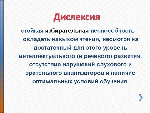 Проявления дислексии в есьма разнообразны, и зачастую зависят от возраста человека, страдающего этим недугом. Чтобы было легче разобраться, симптоматика разделена на несколько подгрупп. Давайте их рассмотрим. Самые первые симптомы дислексии (вне зависимости от возраста, эта категория симптомов очень важна, т.к. указывает на то, что процесс развития отклонения запущен; если вы заметили пять и более из этих признаков, рекомендуем не тянуть с консультацией со специалистом): 1) Неуклюжий захват ручки (или другого инструмента письма). 2) Проблемы со вниманием и концентрацией. 3) Плохая память. 4) Изменения буквенного порядка при составлении слов. 5) Изменения буквенного, слогового или числового порядка при написании и зачитывании. 6) Отказ от чтения вслух и написания сочинений. 7) Трудности в изучении алфавита и таблицы умножения. 8) Затруднения в простейшем ориентировании (лево-право, верх-низ и т.п.). 9) Проблемы с выполнением элементарных указаний. 10) Трудности в освоении правописания