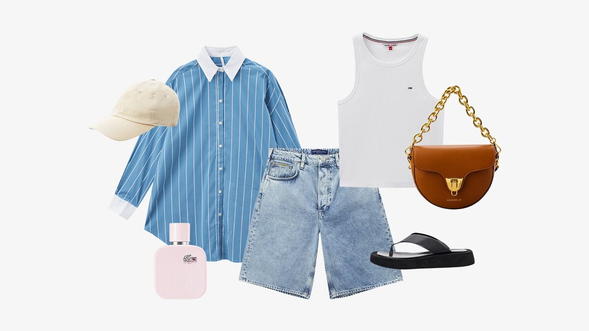 P.S. Но не спешите сдавать ультрамини-модели в переработку — они все-таки пригодятся вам на пляже. Шорты Scotch&Soda, майка Tommy Jeans, рубашка Imperial, сумка Coccinelle, бейсболка Seafolly Australia, сабо El Tempo, парфюмерная вода Lacoste