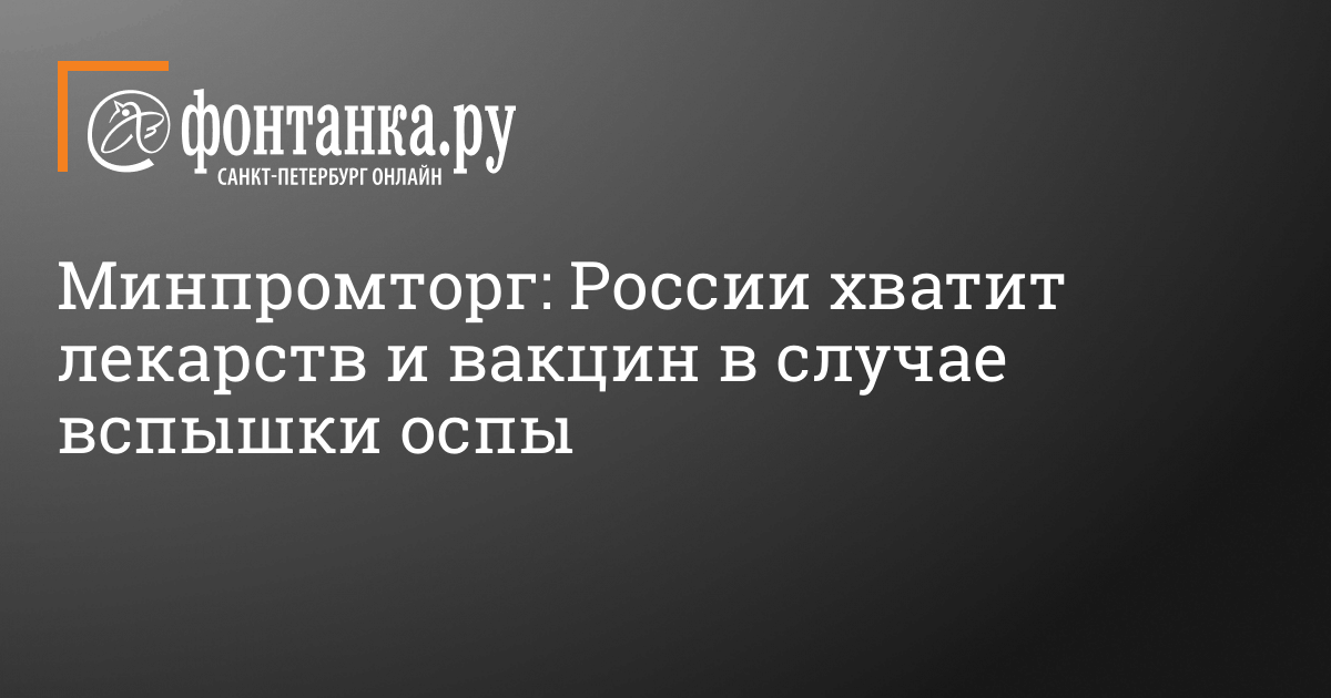 В России достаточно запасов лекарств, вакцин и средств индивидуальной защиты на случай вспышки оспы. Об этом заявили 12 июля в пресс-службе Минпромторга, пишет ТАСС. Кроме того, добавили в ведомстве, в стране налажено производство традиционной вакцины от оспы. Она обеспечивает примерно 85-процентную защиту от вируса оспы обезьян, говорится в методических рекомендациях Минздрава. Также ведутся испытания новой вакцины и тест-систем для выявления вируса оспы обезьян. О первом случае завоза оспы обезьян в Россию стало известно во вторник. Инфекцию обнаружили у молодого человека, вернувшегося в Петербург из Португалии. Он был госпитализирован в Городскую инфекционную больницу им. Боткина, заболевание горожанин переносит в легкой форме.