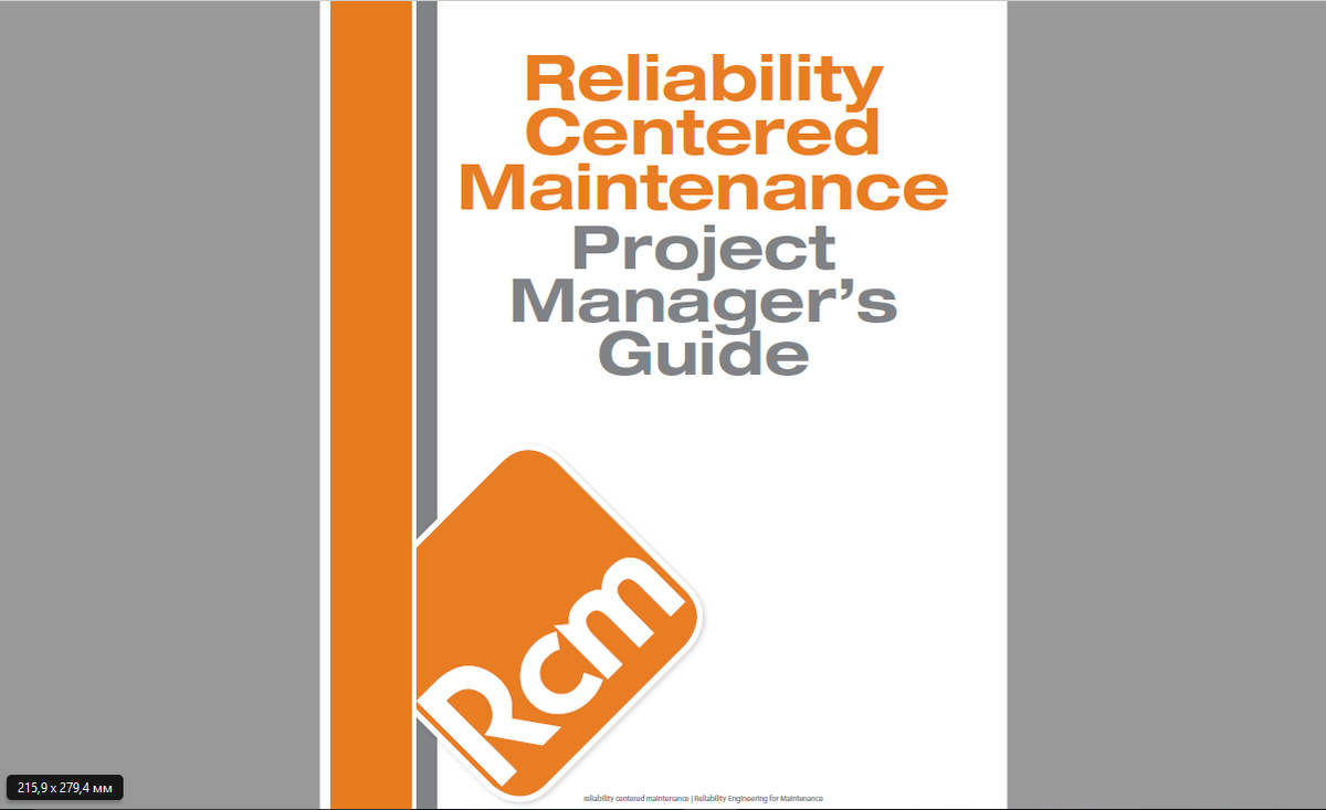Несмотря на то, что успешные подходы к RCM были задокументированы и усовершенствованы на протяжении десятилетий, не все организации достигают успеха. В этой связи сообщество специалистов технического обслуживания и надежности, при лидирующей роли Reliabilityweb.com, подготовило "Руководство менеджеров проектов RCM". Этот документ заслуживает того, чтобы его изучить. Здесь же изложим некоторые основные моменты из этого документа. В руководстве используется четкий, гибкий процесс и набор критериев, позволяющий организации оценить, что требуется для успешной реализации проекта RCM, и избежать ошибок на пути к получению измеримых результатов. Десятки опытных практиков RCM внесли свой вклад в этот документ посредством публичных семинаров, письменных материалов и рабочих групп с момента создания этого руководства в 2005 году до текущей редакции 2014 года. В руководстве рассмотрены четыре фазы проекта RCM: Приведены факторы готовности, которые следует учитывать. Перечислены роли участников п