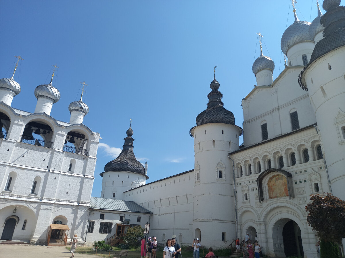 Поэтому здесь есть не только митрополичьи палаты, но и жилые помещения для прислуги, церковного причта, множество церковных помещений, судная палата, хозяйственные службы, сад, где недалеко от озера Неро митрополиты могли гулять на свежем ветерке среди фруктовых деревьев.