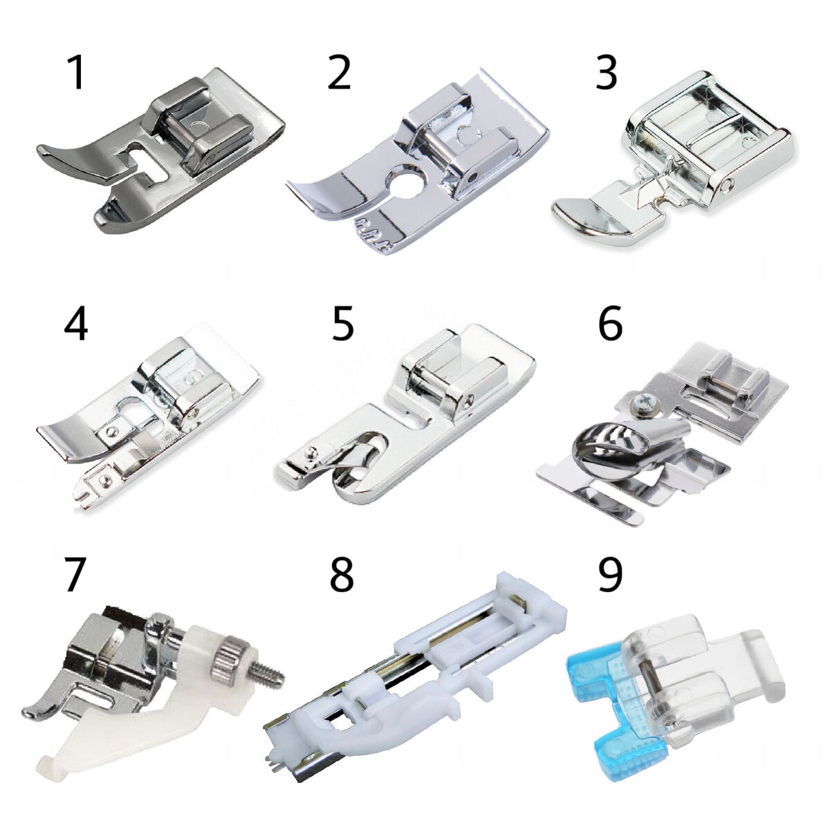 Не каждая рукодельница знает, как широк диапазон лапок и какие возможности они предлагают. В комплекте к швейной машине имеется до 12 видов лапок. На самом деле их в десятки раз больше. Познакомимся с самыми распространёнными.