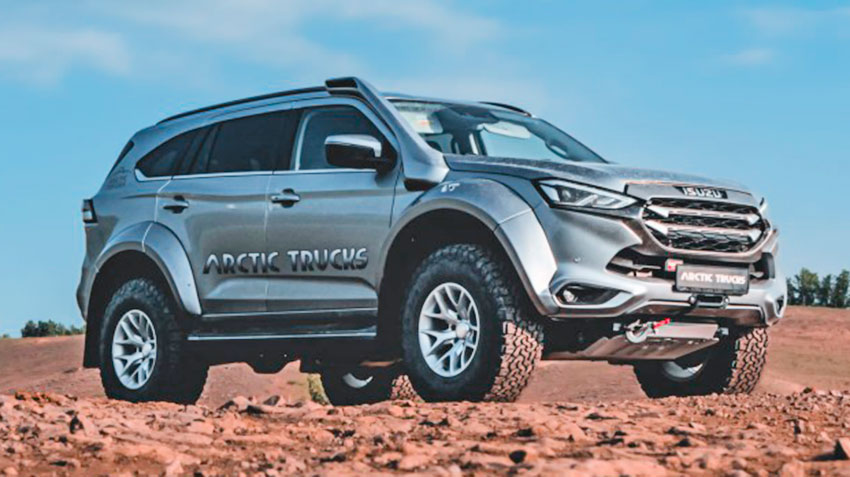 Внедорожник Isuzu MU-X получил арктическую версию AT35 от российской компании Arctic Trucks фото Arctic Trucks Российское подразделение исландской компании Arctic Trucks представило свой доработанный вариант AT35 рамного внедорожника Isuzu MU-X. Список доработок включает усиленную раму, блокировку заднего дифференциала, лифт комплекты передней и задней подвесок (с амортизаторами и пружинами), колеса с грязевыми шинами размерности 315/70 R17, сменившие стандартные размерности 265/60 R18, для установки которых пришлось поставить расширенные арки, кроме того, предусмотрена также дополнительная защита днища. В результате при неизменной длине 4850 мм, ширина автомобиля возрастает с 1875 мм до 2060 мм, а высота с 1875 до 2000 мм. Минимальный радиус разворота увеличивается с 5,7 до 6,3 м. Дорожный просвет возрастает до 278 мм (на 43 мм), угол въезда увеличивается с 29,2° до 36,2°, а съезда – с 26,9° до 30,9°.