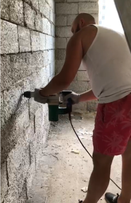 В нашей семье принято многое делать своими руками, прошлым летом, пока искали бригаду для кладки стен из теплоблока, два моих брата (всего их у меня три родных, младших, любимых) сложили 1 этаж и сделали армопояс, потом за дело взялись "профессионалы". На 1 этаже можно было придраться к геометрии кладки, а вот на втором... геометрия была ещё хуже, а самый ..... не могу подобрать цензурного слова)))) Стены были с незаделанными вертикальными швами! Начали с лицевой отделки, зачистили и затёрли швы, а теперь просверливаем, там где есть тонкий слой цементного раствора между блоками, где нет, то сразу заполняем пеной. Вот что получается Дальше хотим выбрать погоду похолоднее, натопить внутри тепловой пушкой и пройтись с тепловизором, и по второму кругу заделывать дыры) Вот что значит недостаточный контроль. Учусь на ошибках брата и стараюсь вникнуть в каждую мелочь.