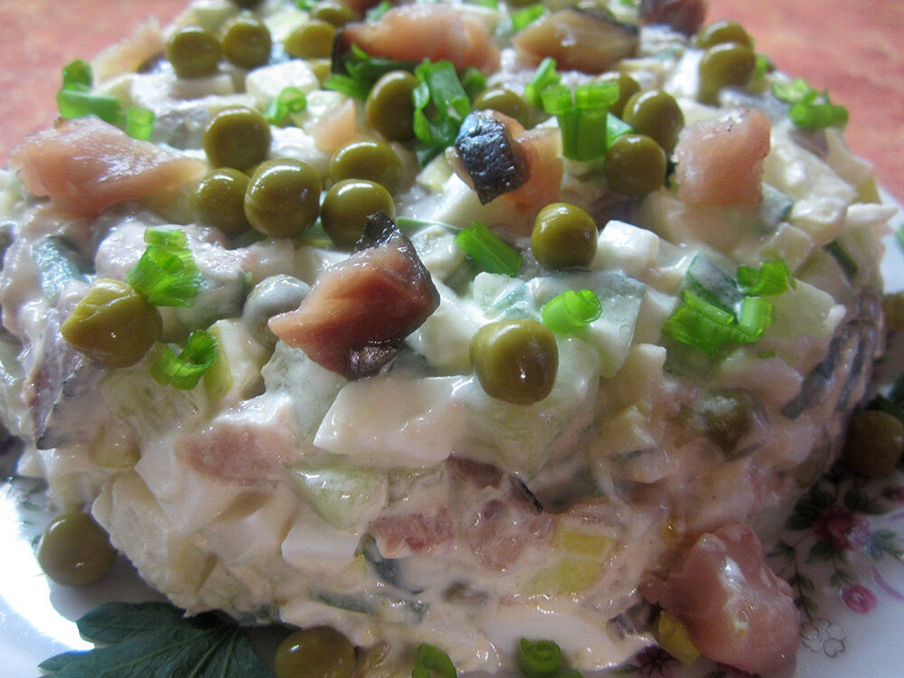 Салат с копчёной скумбрией (или сельдью). "Морской оливье" на минималке