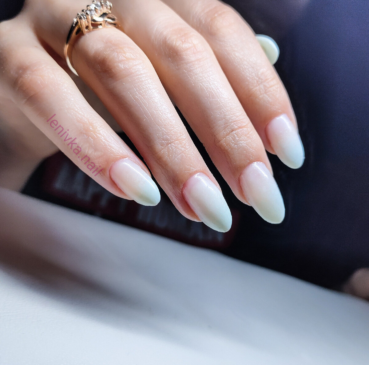 Работа была сложная. Очень длинные ногти и очень долгая носка без коррекции дала о себе знать. Клиент принес ногти с трещинами, сколами. Один ноготь был сломан. Ремонт. Я сняла полностью все покрытие с ногтей, кроме большого пальчика левой руки, на котором оставила тонкий слой базы. У 4-х ногтей длину пришлось срезать под ноль, так как восстановить было нечего и нарастить акригелем на верхние формы 5 ногтей, так как один был изначально сломан. У 4-х ногтей трещины срезала уголками и залатала акригелем, восстановила архитектуру гелем. И много-много опила. Маникюр на этих ручках всегда быстрый и лёгкий, занимает 10-15 минут. Покрытие. Выравнивание ногтевой пластины и укрепление выполнила молочным гелем. Далее аэропуфингом и цветом "бирюзовый жемчуг" сделала градиент на кончиках. Сочетание цветов наинежнейшее! Для более плавного перехода, необходимо между слоями "бирюзового жемчуга" положить слой молочного лака. ❤️Счастье для мастера маникюра - это довольный клиент❤️ #маникюрдома #ман