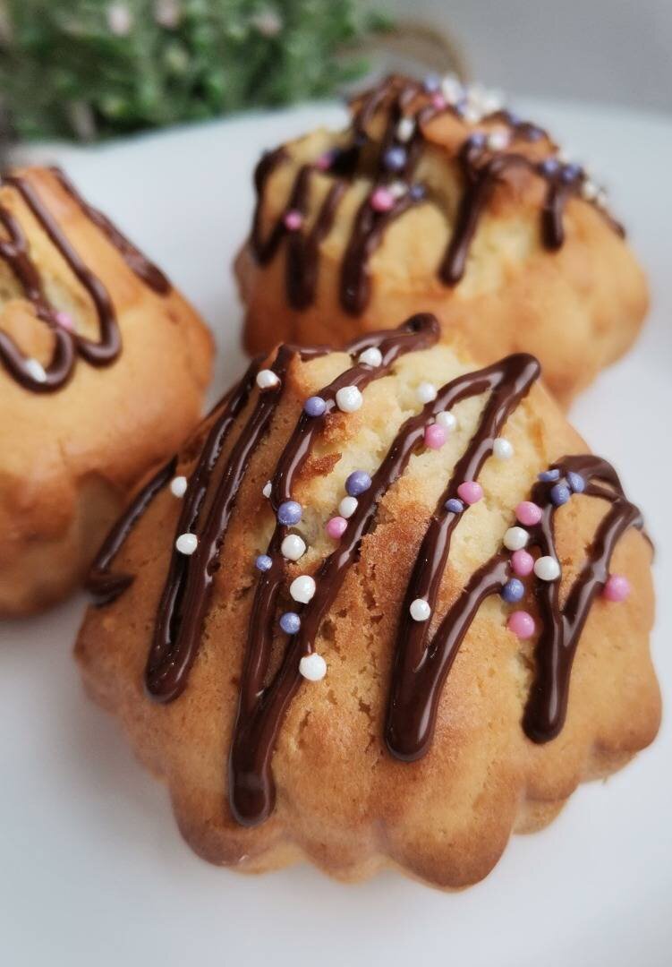 Ингредиенты: муки, яйца, сахара, молока, растительного масла, разрыхлителя, ванильный сахар, кокосовой стружки, глазурь Способ приготовления: Яйца с сахаром и ванилью взбить до пышной пены. Добавить молоко, масло и ещё немного взбить. Муку с разрыхлителем постепенно добавляем в массу, вымешиваем до однородной массы. В конце добавить кокосовую стружку. Формочки смазать растительным маслом. Формочки наполнять примерно на 2/3, так как тесто вырастет 👌 Выпекать при 180°, минут 20 - 30. Даём полностью остыть. Украшаем глазурью