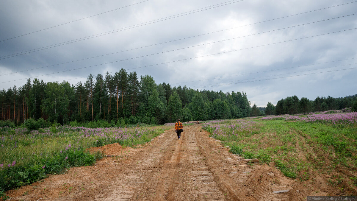 Два километра спустя она вывела нас на свежую лесную вырубку. Навигатор показывал, что святилище — где-то совсем рядом, буквально в трёх сотнях метров от нас. Дождь усиливался.