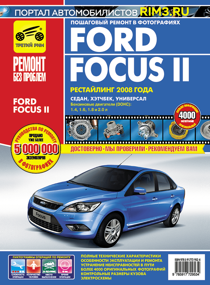 Предлагаем вашему вниманию руководство по ремонту и эксплуатации автомобиля Ford Focus II (с 2008 модельного года) с бензиновыми двигателями (DOHC) 1,4; 1,6; 1,8 и 2,0 л, с кузовами седан, хэтчбек, универсал. В издании подробно рассмотрено устройство автомобиля, даны рекомендации по эксплуатации и ремонту. Специальный раздел посвящен неисправностям в пути, способам их диагностики и устранения.