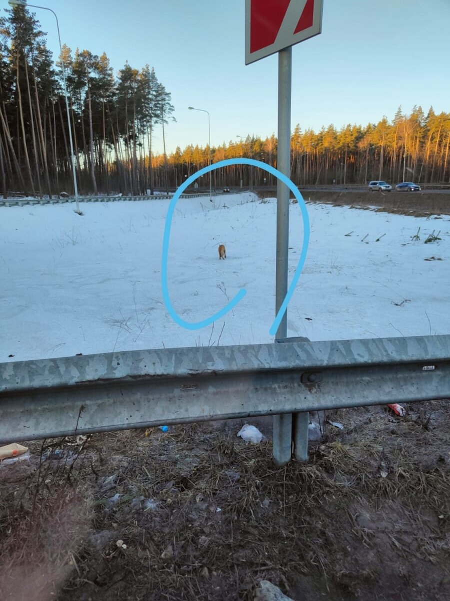 "Доброе утро, по этой точке находится молодая собака со сломанной лапой, прямо между дорог! Пытались сами её поймать - отвезти в ветеринарную клинику, но она не даётся - трусливая. Если можете помогите".