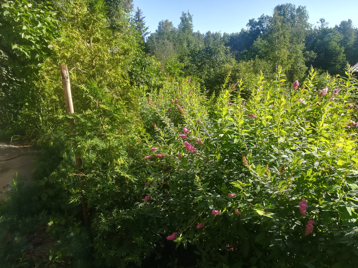 Симпатичный когда-то для меня куст! Столько лет работал перилами, стенкой, прикрытием для соседской громадины. Первые годы я старалась контролировать масштаб, но потом ситуация из под контроля вышла... Всем доброй встречи! Сегодня я наворотила дел! Начну с неожиданной проблемы. Утречком рано, выйдя на крыльцо для очередной фотопробежки, обнаружила, что огромная древняя бузина лежит на земле! Накануне я убирала часть сучьев, веток, даже ствол один выломала. Все знают, что бузина дерево хрупкое, а тут ливень был, ветви напитались влагой, и вот результат! Будем искать положительные моменты. Теперь виден весь сад хост... Ветви бузины не закрывают обзор. К обеду муж все распилил и унес. Бочкам прибавилось работы! Ничего, справились. А кусок мшистого древнего ствола я пристроила под папоротником. Пусть создает антураж. Дальше было интереснее. Возвращаюсь к теме. Так вот лет 8-9 назад, когда руки дошли до склона, я пыталась как-то украсить и обезопасить передвижение по склону. Возможности м