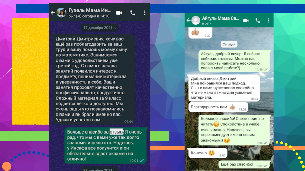 Некоторые из родителей присылали отзывы сами, некоторых я просил написать пару слов, но только честно. Результат вы можете видеть на скринах.