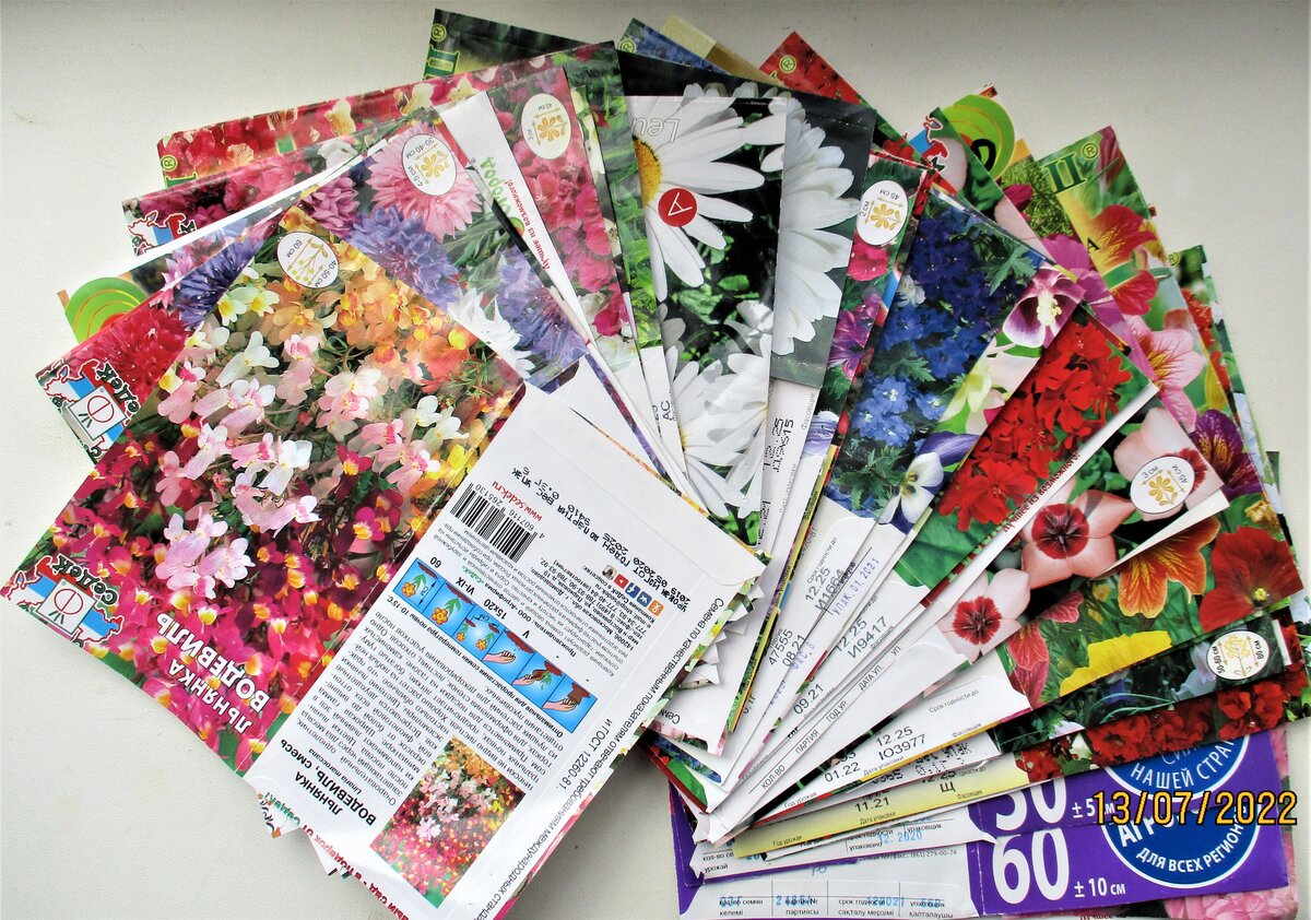 Я никогда их больше ни покупать, ни сажать в своём саду не буду и расскажу почему. Здесь больше 40 пакетов семян. А купила их, думала будут цвести и радовать. Вышло всё наоборот. Расскажу о некоторых из них. Многие выращивала рассадой. САЛЬПИГЛОССИС- название одно чего стоит! Мелким шрифтом в описании обещан размер цветочка 5 см в диаметре с бархатистыми лепестками!!! Красивый же пакетик! Вот что выросло. Сеяла на рассаду, прекрасная рассада была, мощная. В саду они стали хорошо расти , но внешность была - чисто сорняк. Высота стебля см 30 и сверху вот такой цветочек, которого и не видно почти , а диаметр его 1 см. СКАБИОЗА. О ней я имела понятие, так как видела , как они растут в природе. Высота стебля см 40 цветёт несколькими цветочками. Стебли тонкие, одиночные и валяются по грядке. На пакетике обещан диаметр цветка 5 см, на самом деле 3 см. Лён на пакетике с красным оттенком. Вот что выросло. Былиночки до 20 см высотой с 2-3 цветочками белого цвета с красноватой срединк