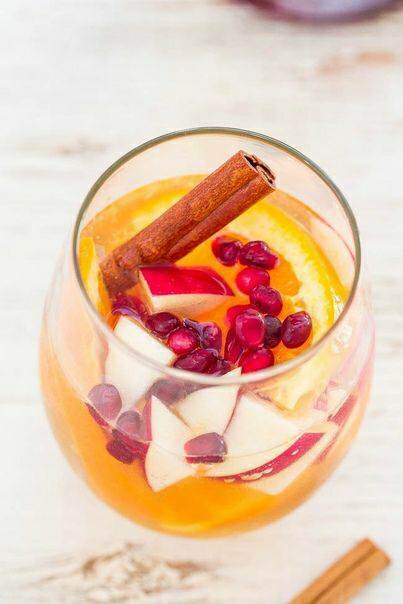 Ингредиенты: • 2 среднего размера яблока, нарезанных • 2 среднего размера апельсина, тонко нарезанных • прим. ¾ зерен граната • прим. 4 палочки корицы • 750мл яблочного сидра, или безалкогольной вариации / шампанского / просекко • 4 чашки зеленого чая, желательно с цитрусовым вкусом • лед, для подачи Инструкции: 1. Смешать в большом графине фрукты, корицу и все жидкости. 2. Подавать сразу же со льдом, или оставить в холодильнике на 4 часа (при этом помните, что весь газ уйдет за это время). Общее время приготовления: 5 минут Количество порций: 8 Приятного аппетита!