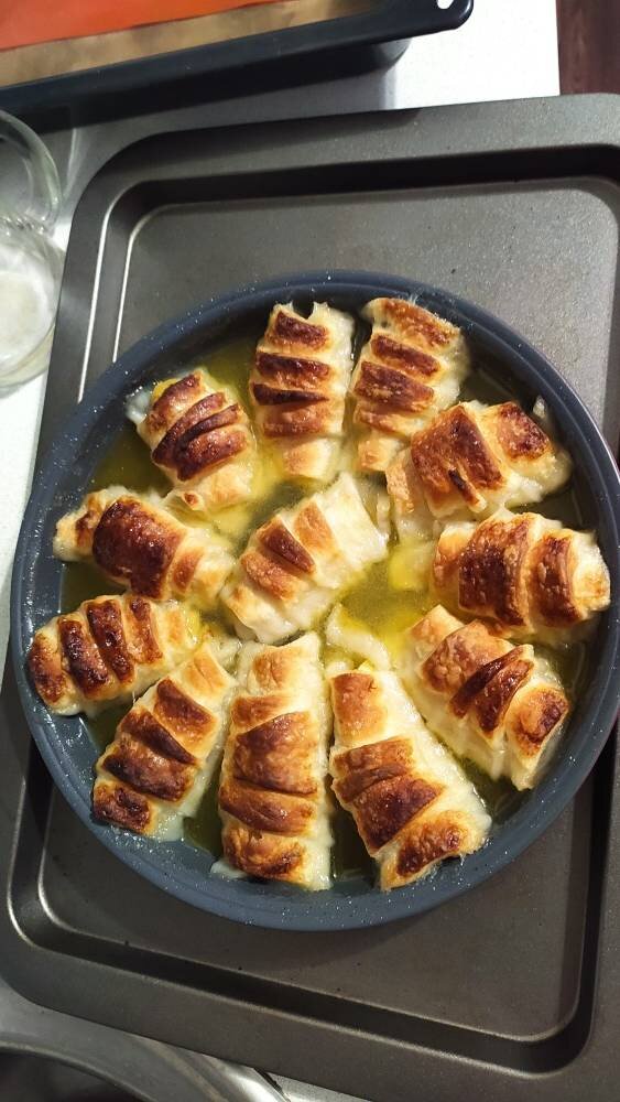 Увидел прекрасный рецепт вкусных булочек🥨🍩🥛 и решил повторить. Калорийность на последнем фото. Ингредиенты: слоёного дрожжевого текста, яблока, сливочного масла, спрайта, сахара Способ приготовления: Размораживаем пласт теста, раскатываем его в длинную сторону и нарезаем треугольничками по ширине кусочка яблока. Яблок убираем сердцевинку режем на дольки и заворачиваем в треугольнике теста. Выкладываем форму. В сотейник выкладываем масло и сахар разогреваем и доводим до кипения, быстро помешиваем чтобы сахар растворился. Полученной массы заливаем булочки, Добавляем Спрайт и ставим в разогретую духовку до 200° на 20 минут. Всё готов. Приятного аппетита! Не пугайтесь, булочки будут в сиропе. Калорийность.