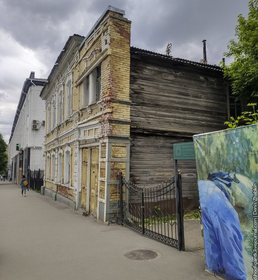 Речь идёт о доме, расположенном по красной линии улицы Вольской сразу за зданием бывшей мебельной фабрики. В его дворе находится одноэтажный деревянный флигель домовладения, в котором в 2000-м году открылся музей художника. В 1984 году флигель, где в 1898-1903 гг жил и творил Виктор Эльпидифорович, был расселён и передан Радищевскому музею. А вот двухэтажный дом по красной линии, в котором с 1876 по 1890 годы проживала семья художника: отец, мать, сам Виктор и две его сестры, расселили лишь в 2015-м году. Процесс передачи здания музею затянулся и лишь в этом году стало возможным начать его реставрацию. Так дом выглядит с крыльца музея Борисовых-Мусатовых