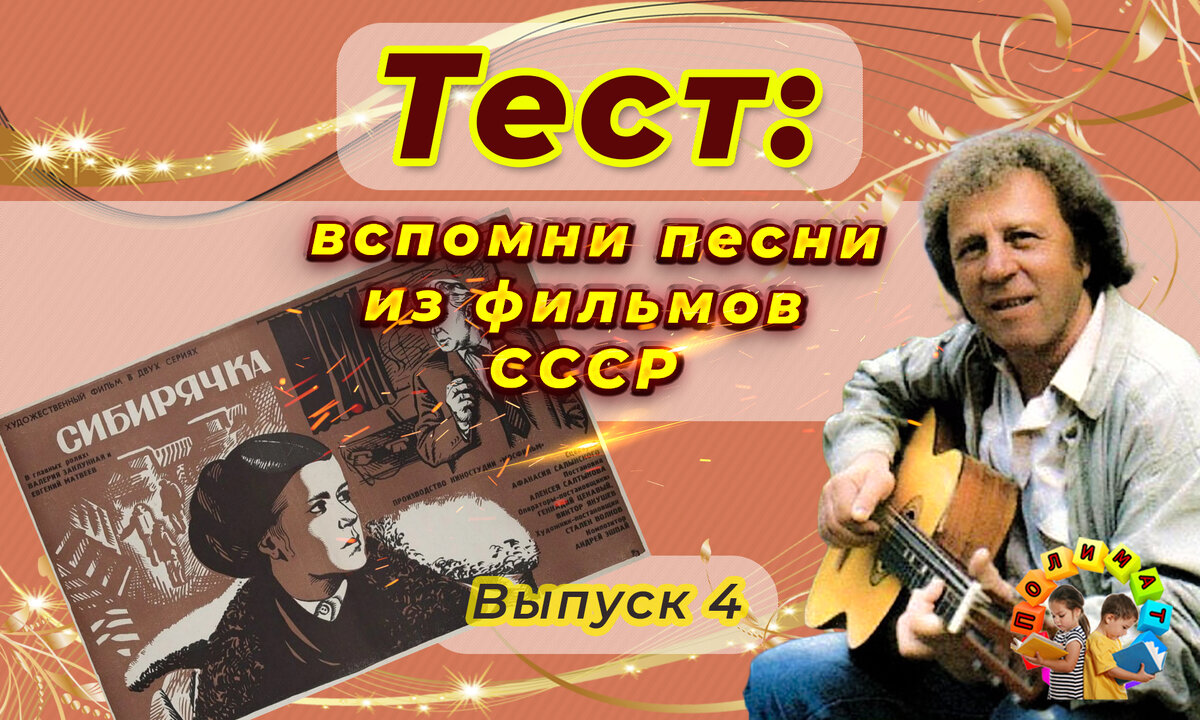 Приветствую Вас, дорогие мои читатели, на канале "Полимат". Предлагаю вашему вниманию второй выпуск теста с песнями из наших замечательных Советских фильмов. В нём вам предстоит вспомнить в каком из фильмов звучала песня. Песня «За туманом» крепко накрепко вошла в народные умы. В 1965 году Юрий Кукин за ее великолепное исполнение стал лауреатом первого конкурса авторов и исполнителей, проходившем в Ленинграде. Композитору Вирджилио Пандзути и поэту Юрию Кукину удалось с точностью передать атмосферу романтики и жажду приключений присущую экспедициям. Слова родились у Юрия Алексеевича прямо на железнодорожной платформе, по пути из Ленинграда в Алтайский регион Горная Шория в горную экспедицию. В 1964 году сам автор стихов исполнил эту композицию, которая моментально сделала его популярным. Прослушивая ее, в мыслях сразу появляется образ того, как друзья сидят у костра вечером, и кто-то под гитару поет эту самую песню. На эту мелодию было положено множество песен на немецком, итальянском,