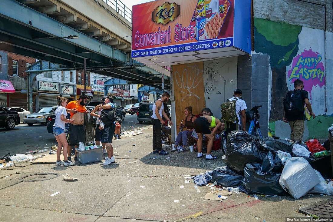 Сейчас эти «братья» продают друг другу наркотики и творят разные непотребства прямо на глазах прохожих. Зрелище специфическое. Если вы пропустили, вот то самое видео ещё раз (ссылка): У русского человека такая клоака вызывает оторопь, однако блогер luckyea77 полагает, что мы ужасаемся напрасно, так как видео ненастоящее, это всего лишь кадры из компьютерной игры. Аргументы блогера и его единомышленников следующие (ссылка):