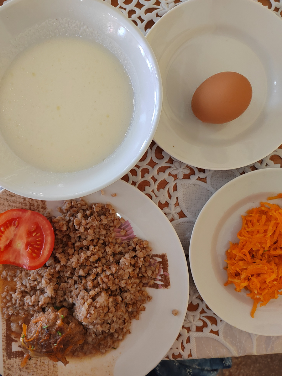 Доброго времени суток, друзья! Кто впервые забежал ко мне на страничку, расскажу немного о себе: Меня зовут Наталия, мне 40 лет, я живу в Балашихе (Железнодорожный) и пеку торты и десерты на заказ. Если вам интересно, и вы хотите сделать кому-то подарок или побаловать себя вкусняшкой, обращайтесь, пишите, всегда рада сделать ваш праздник сладким! А здесь я рассказываю о своей личной жизни (веду дневник), делюсь самыми интересными рецептами выпечки и приготовлениями десертов, а также лайфхаками из кондитерской деятельности. Буду рада вашей подписке и поддержке. Давайте дружить! Ведь вместе и жизнь слаще🎂 Пишу статью сегодня на пляже. Вчера был какой-то день, что все не айс и к вечеру не было даже сил и настроения писать. Утро мое началось, как обычно, в 7 20, кофе и потом завтрак. В меню было : каша манная, гречка с котлетой, овощи, яйцо, салат из моркови, какао и бутерброд. После мы сидели в номере, что-то совсем ничего не хотелось.Затем сходили на процедуры: Саша на жемчужную ванн