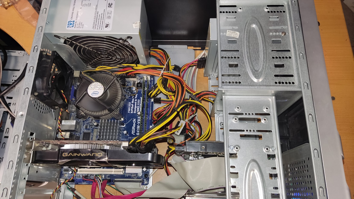 Приветствую! Сегодня хочу поделиться обычными случаями диагностики и простого ремонта компьютеров, которые не достойны были бы даже упоминания, если бы не один факт. Оба компьютера принесли в ремонт разные люди в один день с разницей в пару часов, а внутри - схожие и достаточно уже не часто встречающиеся в 2022 году конфигурации, а также и похожие "дефекты сборки". Рассказываю подробнее. Компьютер первый. Socket 775, мат плата на G41 и DDR3 Процессор Intel Quad Q8XXX серии Память 2Гб + 2Гб Жёсткий диск - обычный SATA Боковых крышек не предоставлено Сразу обращает на себя внимание установка корпусного вентилятора: Если компьютер эксплуатируется с открытым корпусом, как и пришёл к нам, то особого вреда от такого размещения нет, но и пользы тоже. Причина обращения в сервисный центр - человек 2 года живёт без звука, купил уже 2 звуковые карты в "магазине на 3 буквы", но звук так и не появился. На приёмке выясняется, что диагностику в сервисном центре того самого магазина делали, приговорил