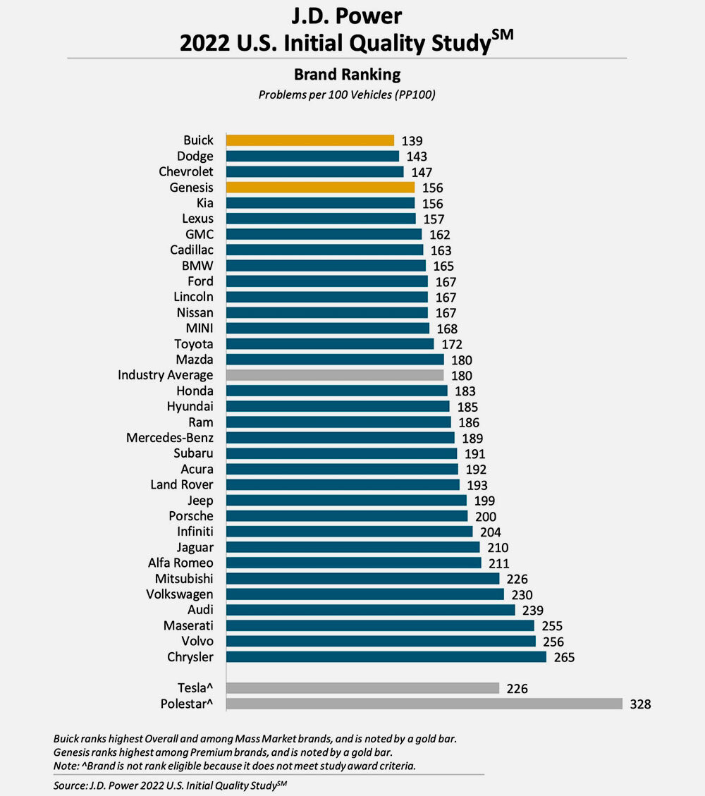 Свежий рейтинг надежности новых автомобилей агентства J.D. Power хочется назвать конкурсом впечатлений. Составляется на основе владельцев, купивших машины в течение последних трех месяцев. Разумеется, не обходится без поломок и в эти 90 дней, но объективным подобный анализ назвать сложно. У некоторых автомобилей болячки проявятся через полгода, у других – через полтора. Поэтому адекватный рейтинг надежности новых машин требует анализа хотя бы за три года эксплуатации. И с одним и тем же (примерно) пробегом. Здесь же – больше эмоций. Поэтому не стоит удивляться, что на первых пяти позициях – американцы и корейцы. А японцы – в серединке. К трем годам все кардинально изменится. Впрочем, корейцы стараются – надежность (по отношению к другим маркам) стабильно растет. Из года в год. Однако в новом рейтинге Kia и Hyundai слишком далеки друг от друга. Как такое возможно, ведь автомобили этих марок – технические клоны. И это, пожалуй, главное доказательство неадекватности подобной «аналитики»…