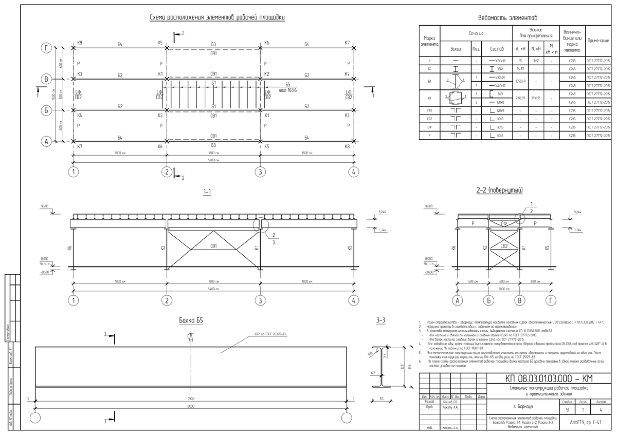- Главные балки из сварных двутавров из листов по ГОСТ 19903-2015 с изменением сечения по длине;