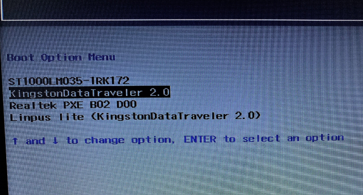Подключаем к устройству usb-накопитель с Linux OS,производим загрузку с накопителя. В примере это флеш 2.0 Kingston.