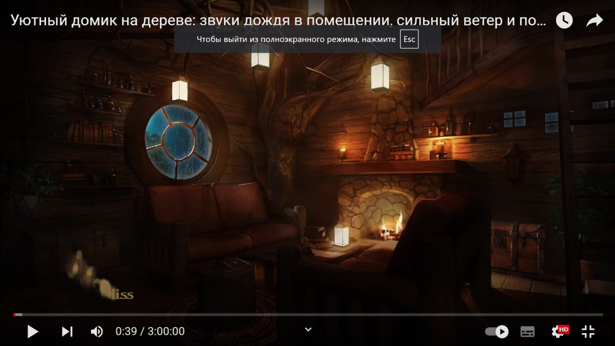 Не так давно я нашла на YouTube замечательные видео, которые помогают не только расслабиться физически, снять стресс, отдохнуть, но и прийти в душевное равновесие. Кроме того, эти видео позволяют ощутить себя в безопасном уютном месте. Сами ролики представляют собой видео, которые длятся несколько часов и под них можно спокойно заснуть. На картинке вы видите очень уютное и красивое помещение с отлично прорисованными деталями (это может быть деревянный домик в лесу, домик на дереве, тихое кафе, старинная библиотека, гостиная в богатом доме, бунгало в тропиках, гамак в саду и т.д.) На фоне обычно не играет музыка, как в аутотренингах или медитациях, мы слышим только природные и иные естественные звуки - шум дождя, звуки метели, бушующей непогоды за окном, треск поленьев в камине, мурчание кота, пение птиц за окном, шум ветра...К тому же, картинка на экране не статичная. Если в комнате присутствует камин, то огонь в нем будет обязательно мерцать, если слышите шум летнего ливня, то по окну