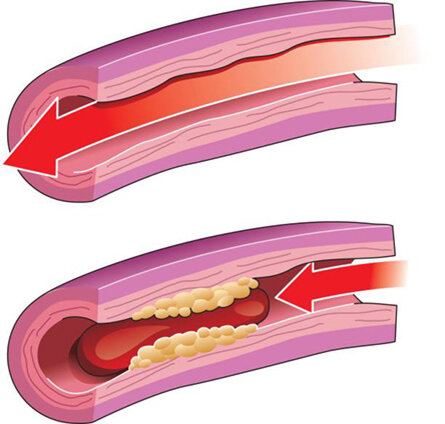 Атеросклероз – это обрастание и закупоривание сосудов атеросклеротическими бляшками, которые состоят преимущественно из холестерина. Со временем в бляшке накапливаются соли кальция, и она становится твердой. Просвет сосуда сужается, нарушается кровообращение, замедляется процесс переноса кислорода и удаление углекислого газа из тканей. Если поражаются сосуды, питающие сердце или головной мозг, то возникает реальный риск инфаркта или инсульта.
