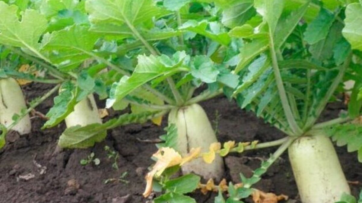 Здравствуйте, мои читатели. Вы когда-нибудь сажали дайкон у себя на участке. Я, например, об этом растении узнала совсем недавно, точнее увидела его на участке моих знакомых. Вообще дайкон – это одна их разновидностей редьки. Но в отличие от редьки по вкусу напоминает редис, который не горчит. Вообще, это интересное растение. Поэтому сегодня я научу вас, как правильно его сажать. Но для начала подпишитесь на мой канал Грядки в порядке, чтобы не пропустить следующие статьи. Сеять семена дайкона нужно с середины июня по июль. Лучше всего подобрать место с рыхлой почвой. Отлично для этого подходят торфяные или песчаные участки. Такая почва даст возможность корнеплоду без труда расти в длину. К сожалению, у моих знакомых нет такого участка. Поэтом они придумали одну хитрость. Они с помощью бура делали в почве отверстия глубиной 0,5 м и их заполняли смесью торфа и песка в пропорции 1:1. Семена высеваются в эти ямки на глубину 2 см. Между растениями должно быть достаточно места, поэтому рас