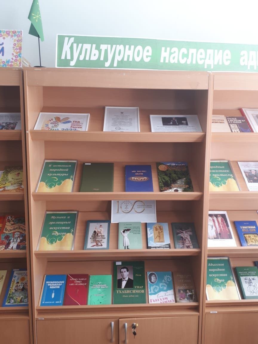 Центральная детская библиотека оформила выставку, посвящённую 100-летию образования Республики Адыгея.