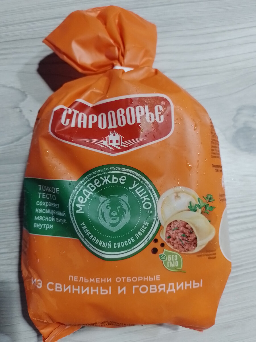 Доброго времени суток! Рада приветствовать Вас на моем канале! Сегодня я хочу рассказать Вам об одном продукте, который мы приобрели недавно Просто не было времени готовить ужин. Это отборные пельмени "Стародворье". Они продаются во многих магазинах, но мы купили их в "Ленте". Кстати, после распродажи они исчезли из их ассортимента. Обычно выводят невостребованные или получающие много жалоб продукты. Была какая-то хорошая скидка, стоили в районе 160 рублей за 900 граммов. Мы решили попробовать эти пельмени с уникальным способом лепки "Медвежье ушко". На состав я в магазине не обратила внимание, бывает. А он такой печальный(