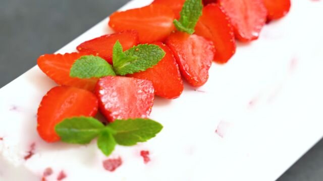 Легкий, нежный и воздушный десерт придется по вкусу и малышам и взрослым. А если красиво украсить, то это угощение послужит достойным украшением стола. Ингредиенты: Для соуса: Способ приготовления: Шаг 1. Творожную массу переложите в глубокую емкость и хорошенько измельчите при помощи блендера. Шаг 2. Желатин растворите в воде как написано в инструкции и оставьте набухать. Шаг 3. К измельченному творогу добавьте йогурт и снова взбейте блендером до однородного состояния. Масса должна получится гладкой. Шаг 4. Емкость с набухшим желатином поставьте в горячую воду и оставьте на 2-3 минуты. За это время он успеет раствориться. Шаг 5. Клубнику нарежьте мелким кубиком. Шаг 6. К творожной массе добавьте ванильный сахар и сахарную пудру. Обязательно попробуйте массу на вкус, чтобы понимать устроит ли вас сладость десерта. Обычный сахар в данном рецепте лучше не использовать, т.к он сильно разжижает творог. Шаг 7. Взбивайте массу блендером около 2-х минут. Это сделает десерт более воздушным. Ша