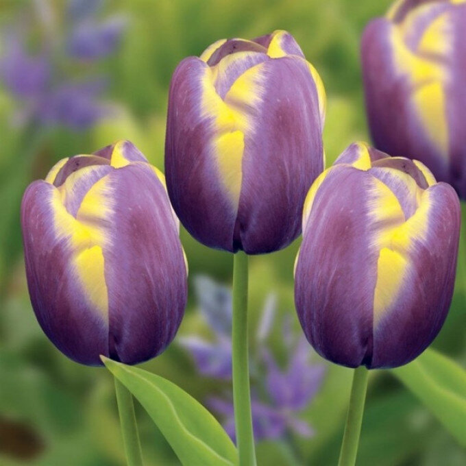 Относится к группе Триумф - форма цветков классическая, бокаловидная. Окраска очень эффектная, фиолетовая с ярко-желтой каймой. Цветки держатся долго и хорошо сохраняют форму. Высота 45 см. Посадка - август, сентябрь, октябрь. Глубина посадки зависит от размера луковицы и составляет в среднем 8-12 см. Минимальное расстояние между луковицами должно вдвое превышать их диаметр.