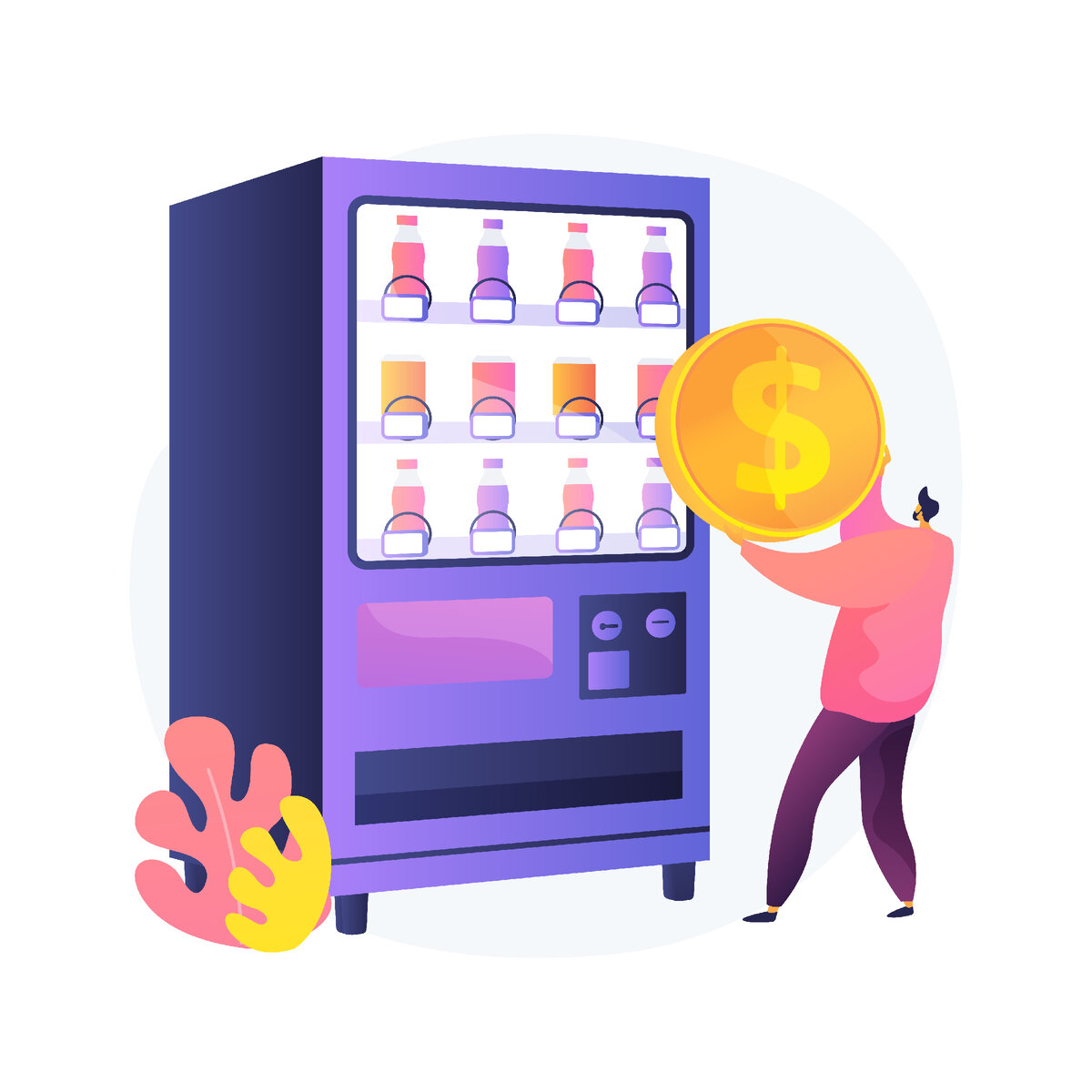 Вендинговые аппараты — это устройства самообслуживания для людей. Внеся деньги, клиент получает товар или услугу в автомате без участия продавца. Вендинги не требуют найма штатных сотрудников, организации производства. Часто бизнес ассоциируют с реализацией кофе. В России самыми известными товарами, продаваемыми таким способом являются: - кофейные/чайные напитки; - чипсы, шоколадки, сухарики (прочее) Пример с продажей кофе стал в бизнесе классическим при объяснении ценообразования в пользу продавца. При издержках на 1 чашку в 10-20 рублей потребитель покупает ее за 50–150 рублей. Таким образом, цена превышает расходы. Далее в пример берем кофейный аппарат, попробуем подсчитать расходы и доходы: 1. Цена на кофейный автомат начинается с 50 тысяч рублей и доходит до 400 тысяч рублей 2. Стаканчики для кофейного автомата 250-500 рублей (зависит от презентабельности) 3. Вода, кофе, шоколад, сахар, сиропы, чай от 5000 тысяч до 14000 тысяч рублей (зависит от спроса) 4. Аренда-очень важная ро