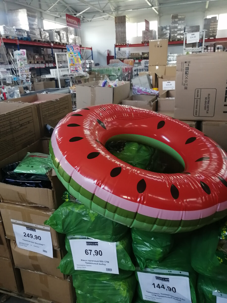 Всем здрасьте! Вчера ездили в ДОБРОЦЕН, покажу Вам что мы там интересного увидели, что купили. И так... Круг для плавания, очень большой, жалею, что не купила, наверное поеду на днях за ним. Цена 249.90 рублей. А вот этот гель для душа я купила, объем 650мл за 149.90 рублей. Недавно брала в "Ярче" гель для душа, тоже DURU, но 250мл за 99 рублей. Этот выходит очень выгодно и пахнет вкусно. Также есть дезодоранты DURU, куплю, как мой закончится. Мужской дезодорант купила, но у него цена уже выше 119.90 рублей. Появились такие чистящие средства, в прошлый раз их не было, нужно взять на пробу. Чоко пай, большая коробка, не обращала внимания сколько он сейчас стоит в других магазинах, но думаю, что здесь дешевле однозначно. Покупаю эти вареники второй раз, насколько мои дети привередливые и то сказали, что очень вкусно. Цена 135.90 рублей, рекомендую. За 1,5 кг риса, цена, я думаю, что вполне адекватная. В других супермаркетах такая цена за 800 грамм. Жидкое мыло такое купила, 500