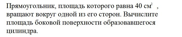 Площадь боковой поверхности цилиндра Уважаемые мамы и папы, дедушки и бабушки! Предлагаю решение задачи 776 из 7-го издания учебника по математике для 6-го класса авторов А. Г. Мерзляка, В. Б. Полонского и М. С. Якира под редакцией. В. Е Подольского. Решение: Посмотрите на рис. 65 учебника. Площадь прямоугольника равна произведению двух его противоположных сторон – в данном случае OA и AB. Из §26 школьники знают, что площадь боковой поверхности цилиндра равна: Отрезок OA – это радиус r, а отрезок AB – это высота цилиндра h.