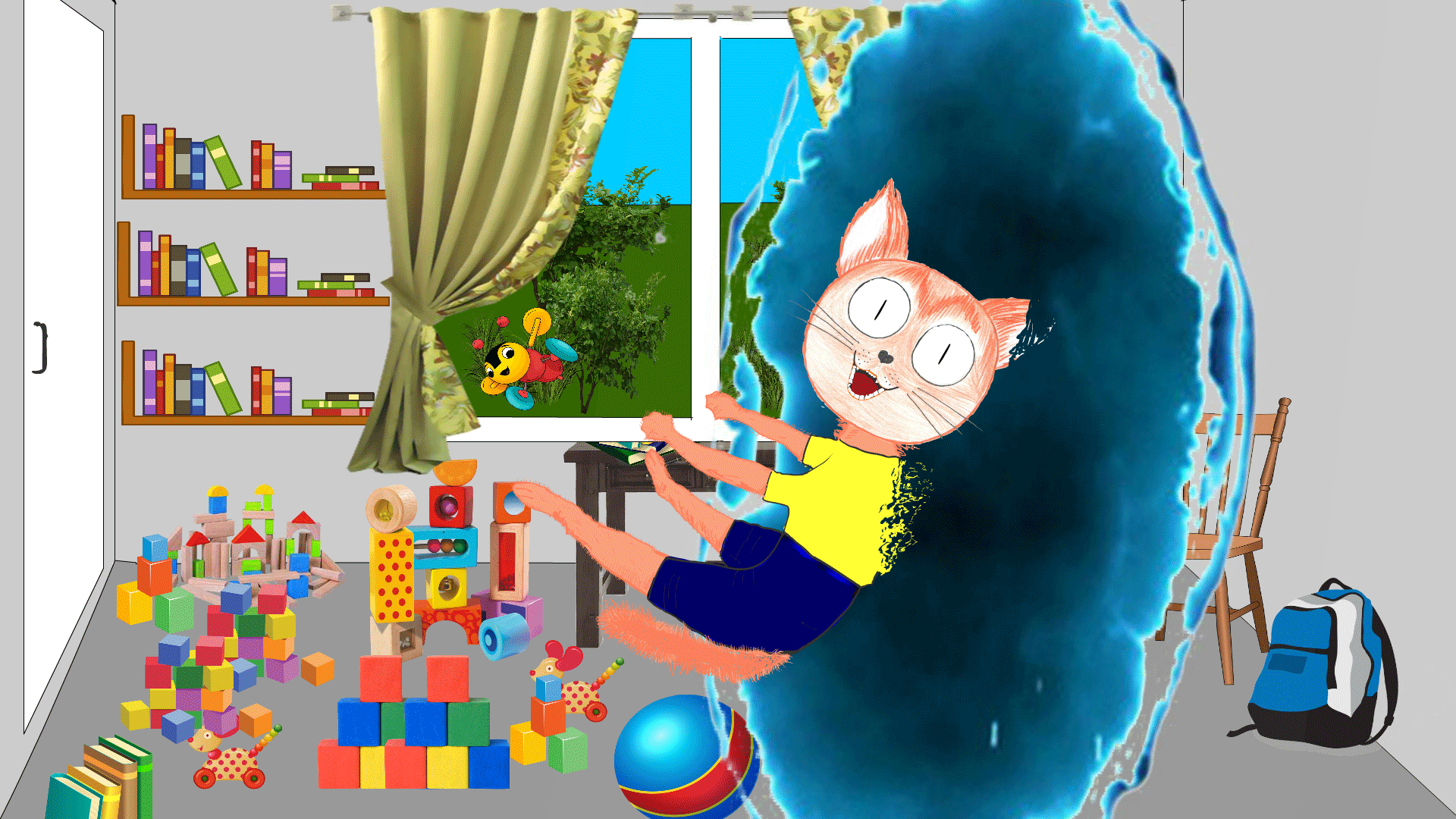 Спустя еще некоторое время Рыжик забыл про эту свою находку и про ту странную лужицу в кустах. Он играл в своей комнате в игрушки, да так увлекся что разбросал почти все, что было. Маленькие колесики деревянные игрушечные кирпичики и дощечки, винтики и гаечки… все валялось на полу, а Рыжик был занят своим очередным фантастическим изобретением…. На этот раз он изобрел какой-то странный карандаш с вкрученными в него винтиками…