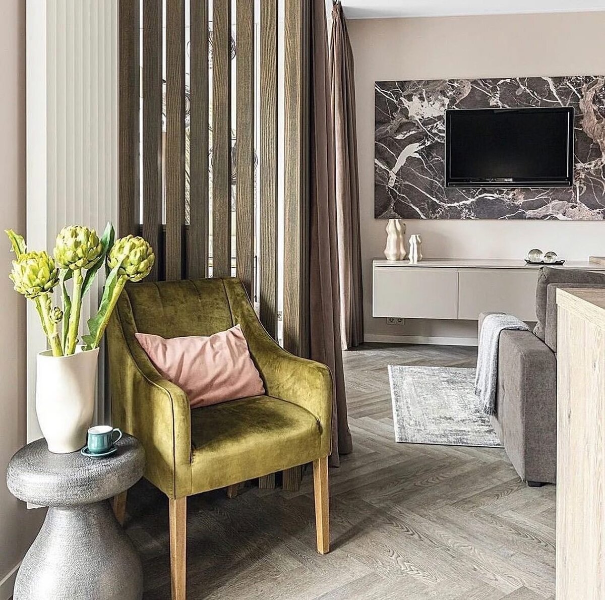 Квартира площадью 43 кв. м с огромной террасой в 30 кв. м - идеальное пространство, которое можно адаптировать под разных владельцев и любые цели. Дизайнер продумала все до мелочей. Мы рады быть частью этого большого и красивого проекта. Спасибо за доверие. Кухонный гарнитур компактный и в тоже время обладает всеми необходимыми бытовыми приборами: плитой с вытяжкой, встроенной микроволновкой, посудомоечной машиной и холодильником. Чтобы избавить помещения от лишней мебели и вещей, была спроектирована мини-гардеробная, в которой поместится не только верхняя одежда и постельное белье, но и крупные приборы быта.