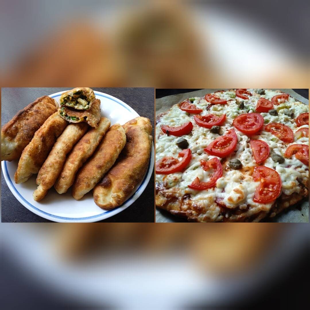 Очень удобно, когда из одного и того же теста можно приготовить несколько блюд. У меня пицца и пирожки жареные, но их можно и запечь в духовке. С любой начинкой. Фантазия, немного терпения и все получится 👌. Ингредиенты: теплой воды, муки , сахара, соли, сухих дрожжей, оливкового или растительного масла, растительного масла для жарки пирожков Способ приготовления: Смешать все ингредиенты, замесить тесто, дать постоять в теплом месте 1 час. Дальше по классике: для пиццы тесто растянуть руками до нужного размера. Выложить начинку, у меня поэтапно: соус, сыр, колбаса, зелёный лук, соленые огурцы, сыр, томаты, каперсы. Запекать в разогретой до 200 градусов духовке 20 минут. Для пирожков приготовить начинку (любую на ваш вкус), у меня зелёный лук и вареные яйца. Сформировать пирожки. Жарить на растительном масле до румяности с 2 сторон.