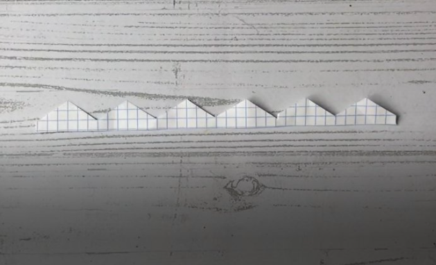 В этой статье пойдет речь о самых оригинальных и удивительных защипах не стандартной формы. Классические защипы - это прямые застроченные складки (0,3-1 см). А как вы смотрите на то, что защипы можно оформить в виде разных форм, например, треугольники, прямоугольники, овалы и прочее? Время шить рубашки и школьные блузки с новым декором! Покажу, как выполнить зубчатые защипы. ЭТАПЫ РАБОТЫ: 1. Начертить шаблон. Удобно чертить на бумаге в клетку. Шаблон может варьироваться в зависимости от того, какой итог хочется получить: зубчики можно сделать меньше или больше. 2. На изнаночной стороне ткани (полочки) расчертить мелом или исчезающим маркером складки с расстоянием 2 см-2 см-0,5 см. 3. К средней линии складки (сгибу), на фото отмечены галочкой, приложить шаблон и обвести зубчики. Обратите внимание: в 1 и 3 линиях шаблон укладывался вровень с краем ткани, во 2 случае шаблон сместила на половину зубчиков для образования шахматного порядка. Следующие складки продолжить по этой же схеме.