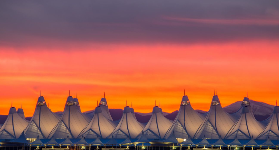 Инновационный дизайн аэропорта Денвера - натяжная крыша, которая символизирует величественные и хорошо известные заснеженные горы в окрестностях.