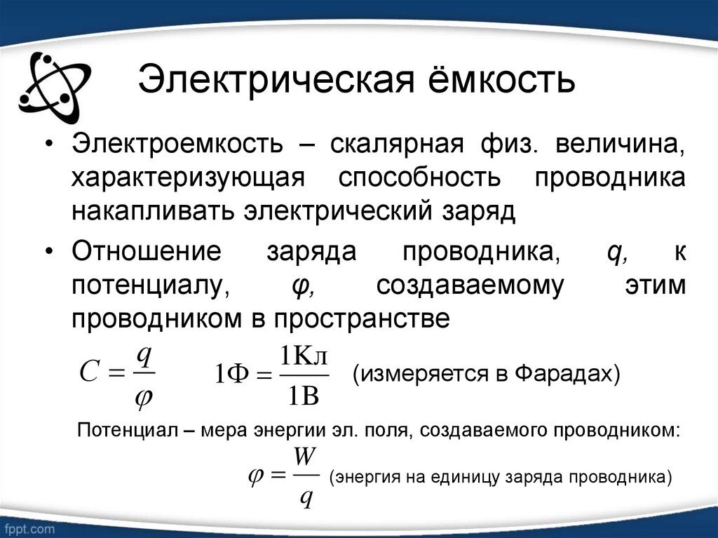 Электрическая емкость характеризует способность проводника сохранять электрический заряд в электростатическом поле.