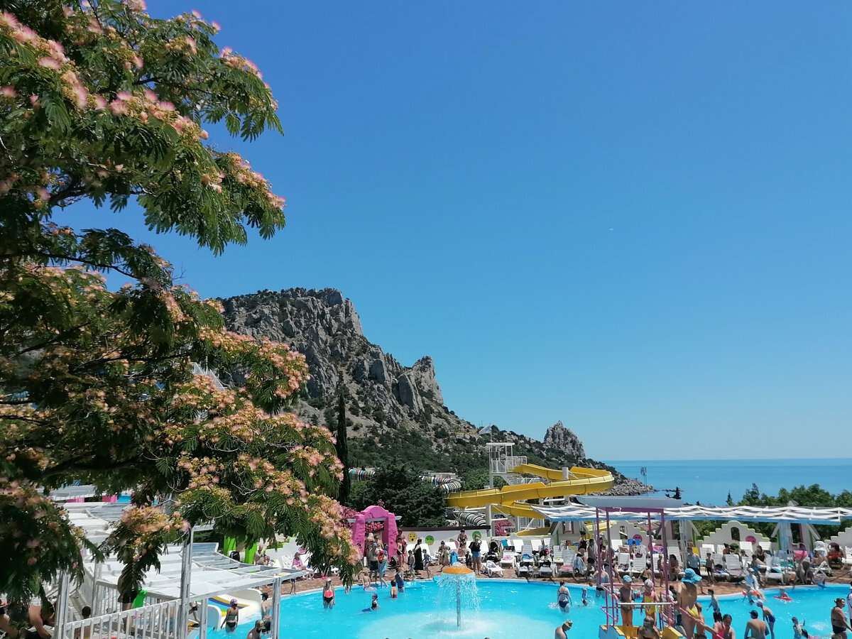 За те годы, что мы живём в Крыму мы не были только в аквапарке в Судаке. Аквапарки Севастополя, Евпатории, Алушты Ялты все очень хороши. Но Симеизский аквапарк наш самый любимый и родной. Можно совершенно точно сказать, что в нем наши дети выросли🤦♀️😉 Аленке, средней был годик, когда она впервые здесь побывала. И потом, каждый год, порой и не по одному разу мы бывали здесь. Последние несколько лет наш клуб, где девчата чем только не занимались (сейчас рисуют), устраивают бесплатное посещение для учащихся детей, а для родителей билет льготный. И на нашу ораву это ощутимый бонус. Если бы мы даже воспользовались тарифом для крымчан у нас бы вышло 6100 (из нашей компании двое без прописки крымской). Если бы пошли как многодетные (удостоверения о чем мы до сих пор не имеем) - 5200. А так, всего за 900 рублей четверо детей и я отлично отдохнули. Вообщем, нарезвились мы от души! Я была с Шурой конечно, только разок вырвалась - со средней дочкой скатилась вот с этой прелести. Самая лю