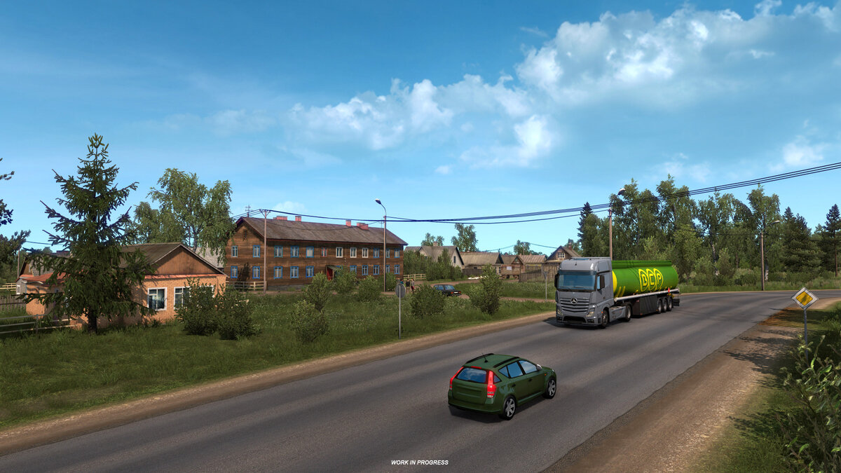 Это не означает, однако, что мы не сталкивались с совершенно иными ситуациями в других областях. Префабы, текстуры и активы были специально адаптированы к различным дорожным условиям в этой огромной стране. Наши команды также сосредоточились на улучшении соотношения между местными дорогами и автомагистралями. Водители часто будут ехать по местным дорогам, а не по шоссе, поскольку небольшие дороги составляют большую часть дорожной сети в России. Вы также можете ожидать найти довольно много грунтовых дорог! Просто следите за ними, так как эти сложные дороги часто используются и местным транспортом.