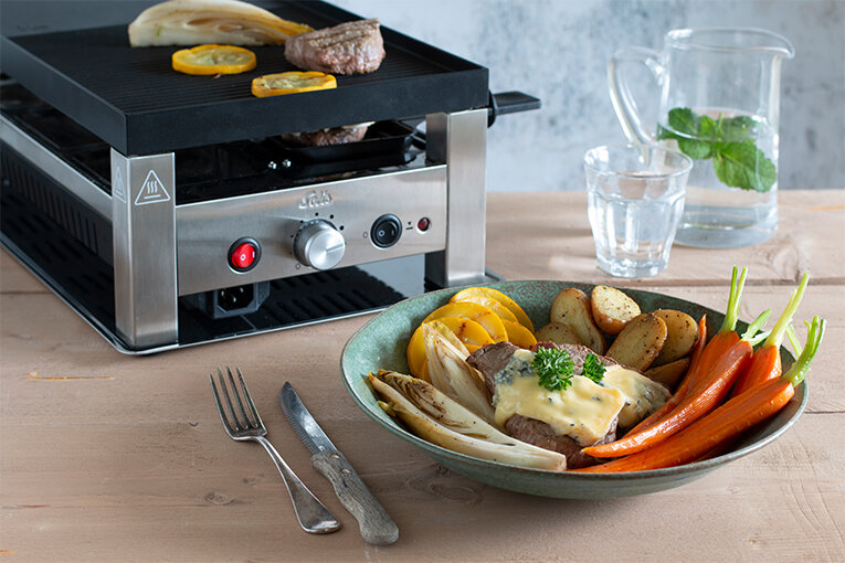 У многих пища, приготовленная на гриле, ассоциируется с чем-то не очень полезным. Все привыкли, что польза — это про тушеное, вареное и пареное. На самом деле все наоборот, а главное — на гриле еще и вкуснее. Потому что быстро Вне зависимости от того, что будет запекаться на гриле — овощи или мясо — за счет высокой температуры еда готовится быстро, поэтому сохраняет природные волокна, текстуру и сочность. Это как с шоковой заморозкой продуктов, только про жарку. Потому что все остается на своих местах Следующий пункт — витамины и микроэлементы также остаются в продуктах. При варке, например, они уходят в бульон, а при жарке — разрушаются. Именно поэтому еду на гриле советуют даже при различных болезнях ЖКТ, таких как гастрит и холецистит. Потому что ничего лишнего Не нужен жир в виде масла или сала — овощи и грибы не пригорают, благодаря специальному покрытию, а природный жир от мяса не успевает превратиться во вредный канцероген. Более того, современные грили оборудованы поддоном для